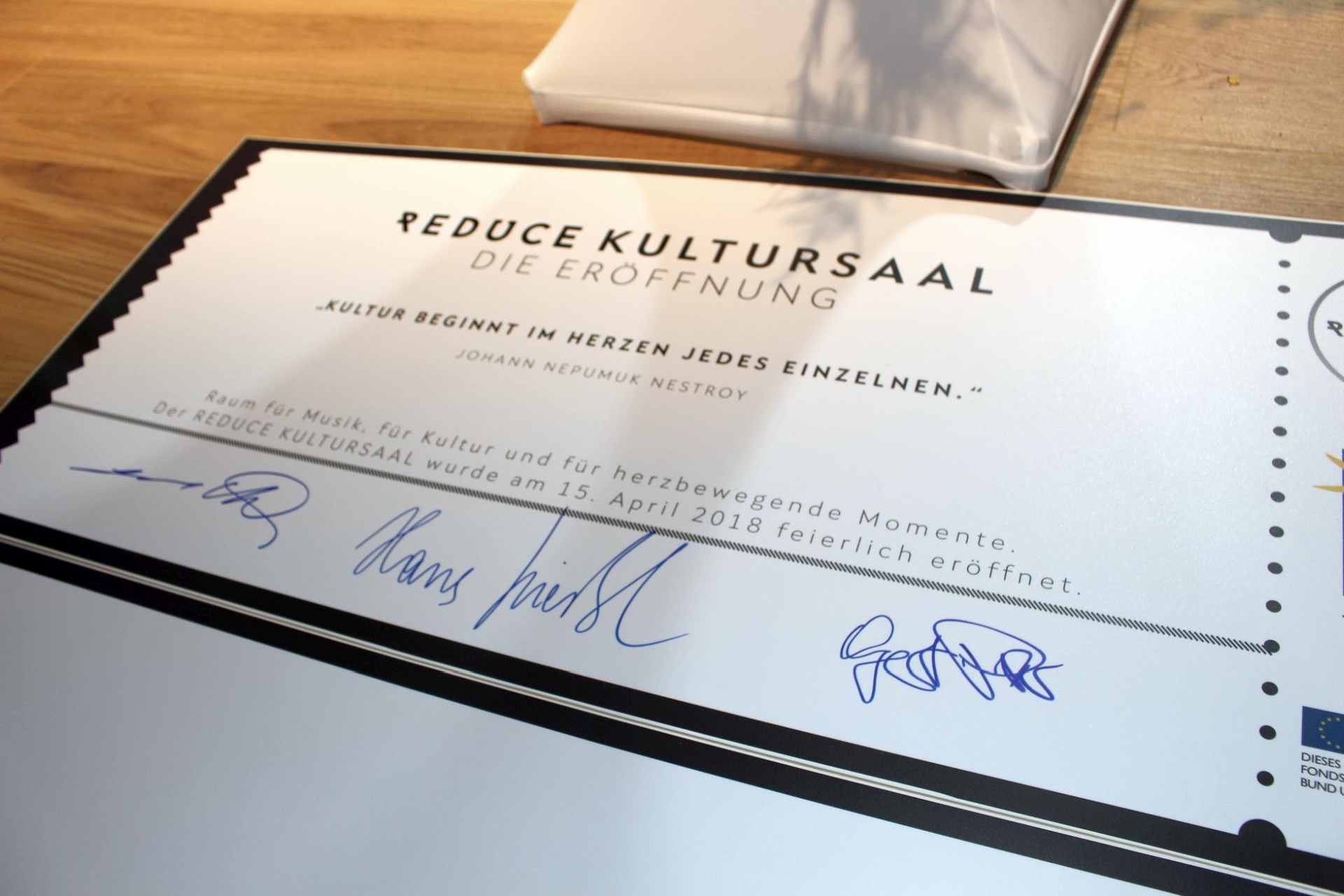 Bad Tatzmannsdorf, 2018. április 15. A REDUCE Bad Tatzmannsdorf számára– az önkormányzattal és a Bad Tatzmannsdorf-i gyógyfürdőalapítvánnyal közösen – szívügy volt, hogy a település számára egy modern, a mai szabványoknak megfelelően felszerelt kulturális termet építsenek.