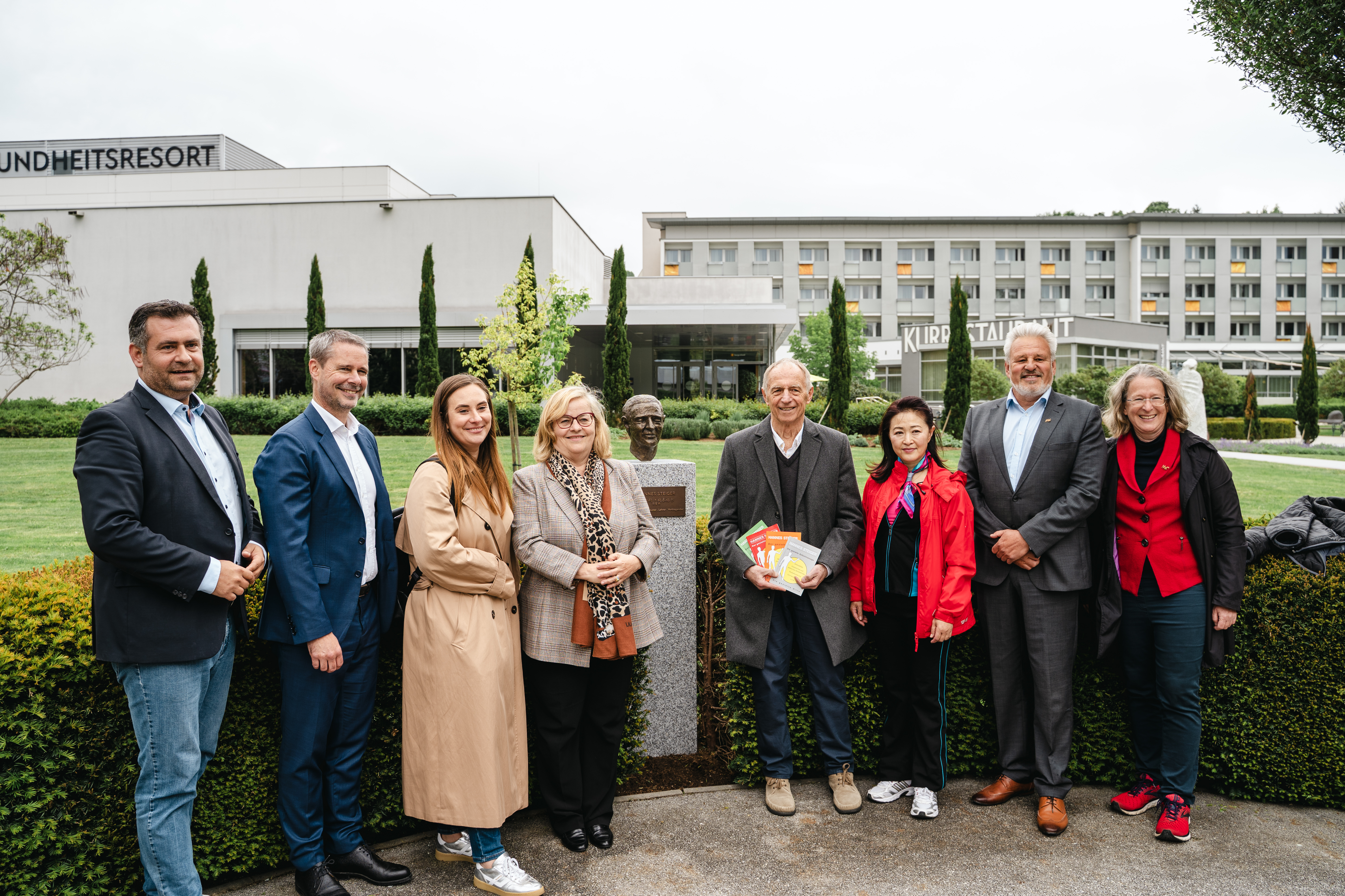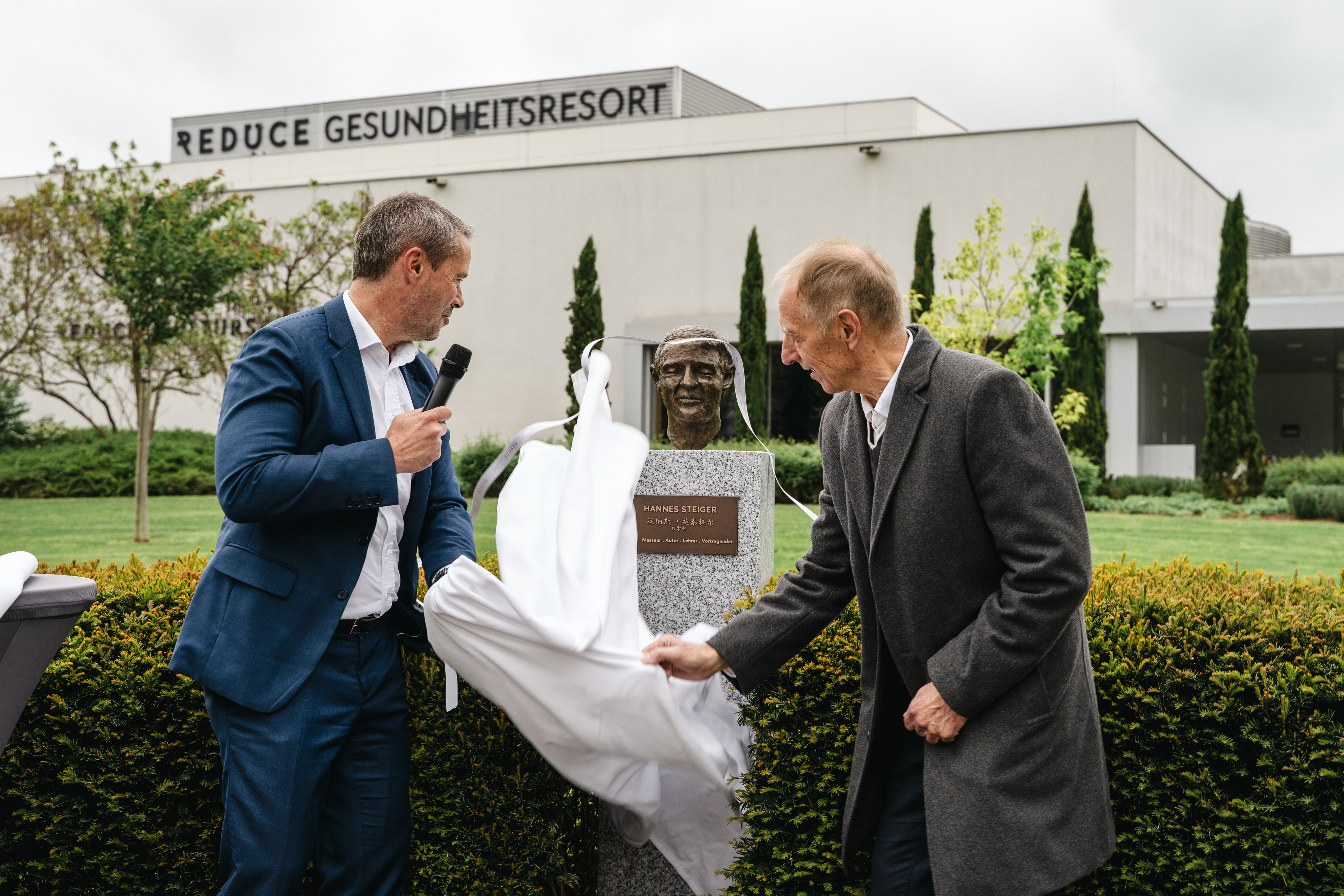 Tegnap, 2025. május 8-án ünnepélyes keretek között mellszobrot avattak Hannes Steiger, a sokéves gyógymasszőr, író és akupresszúra úttörőjének tiszteletére Kurpark . Számos kísérő és tiszteletbeli vendég, valamint a REDUCE vezetősége tisztelgett a 74 éves férfi előtt.
